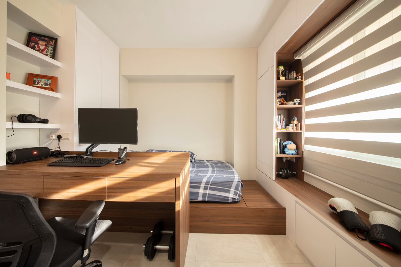 In most HDB bedroom designs, especially 3-room and 4-room units, the number of bedrooms is fixed but the needs of the household are not. A young couple may have an extra room that feels like a luxury at first. Over time, that same room becomes one of the most important spaces in the home. The reality is that each bedroom will likely serve multiple purposes over the years. A rigid design may look impressive at the beginning, but it can become restrictive when your lifestyle changes. Built-in carpentry that fills up every wall might feel like a good use of space, but it can make future adjustments difficult. Designing with change in mind allows you to maximise the usefulness of each room. It also helps you avoid unnecessary renovation costs in the future.