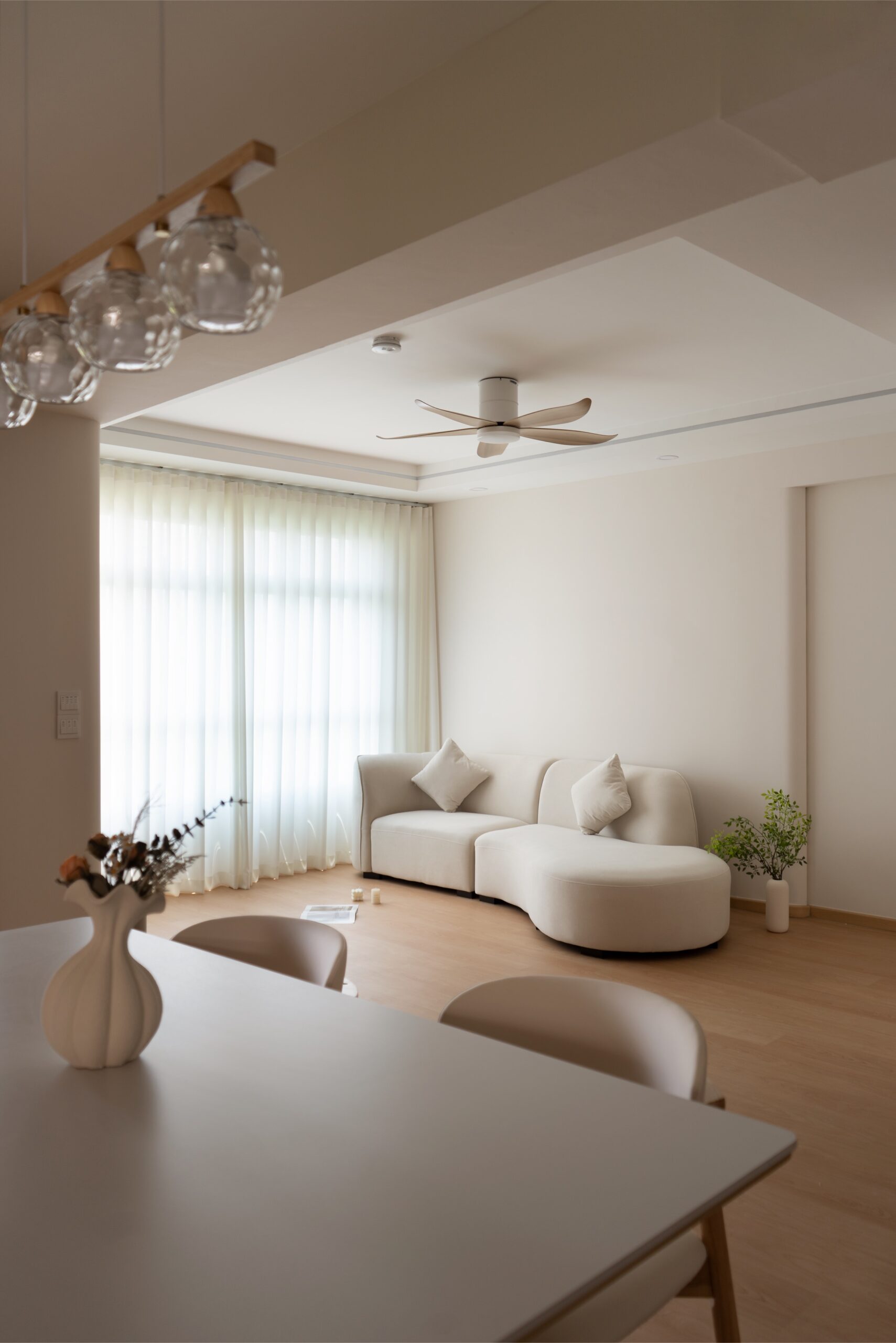 The design emphasizes warmth and calmness, combining the simplicity of Nordic aesthetics with a cozy, elegant atmosphere. Curved architectural lines, neutral color palettes, and smooth finishes create a sense of serene sophistication while maintaining functionality and openness.