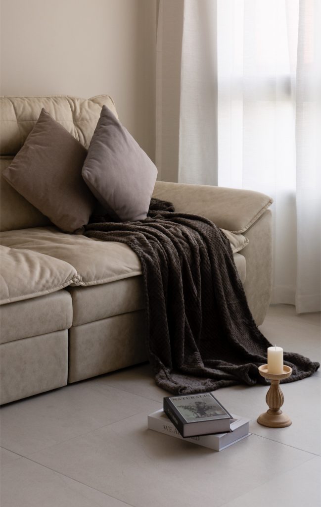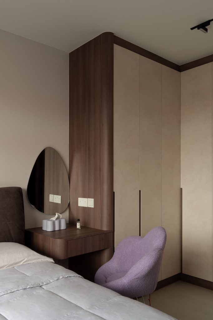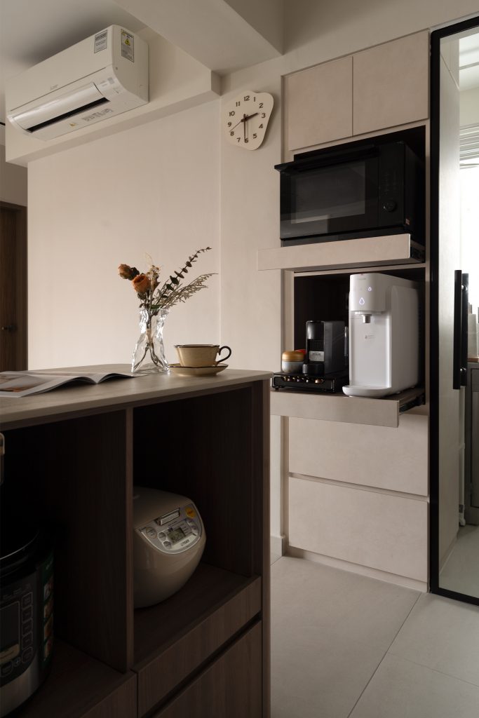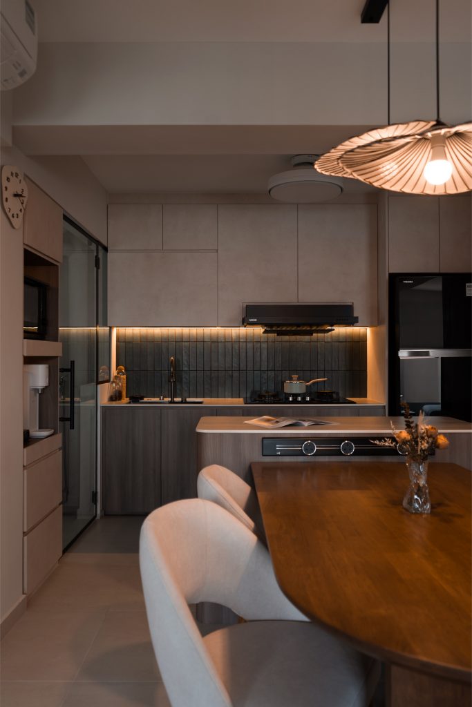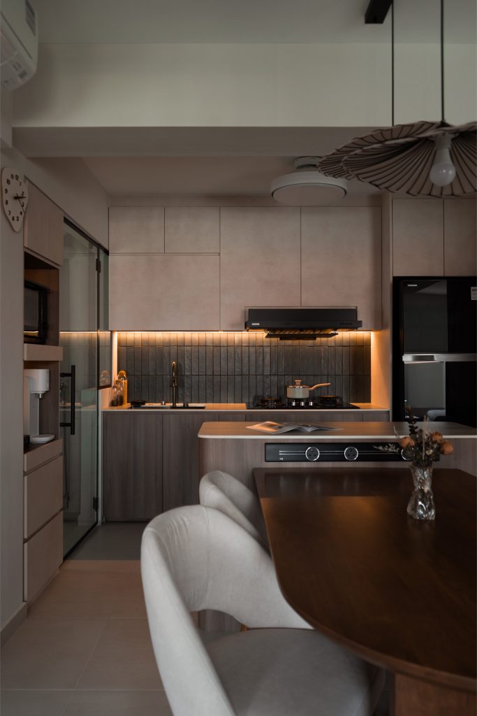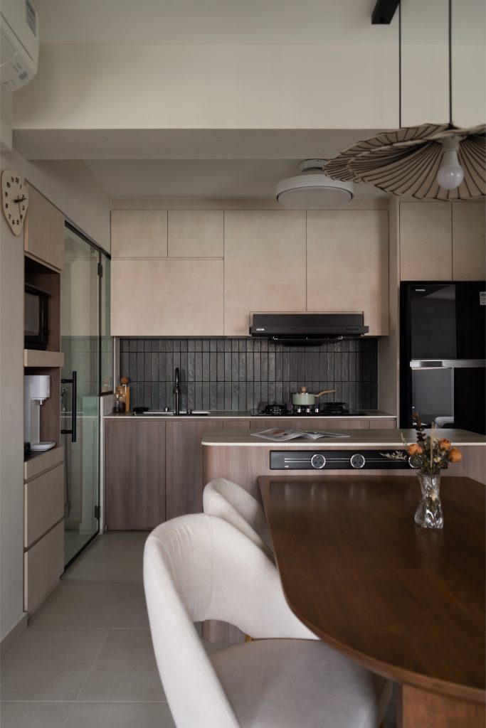 This home exemplifies the essence of Muji design—where form follows function and calm is cultivated through simplicity. Earth-toned cabinetry and soft beige furnishings evoke a gentle warmth, while wood textures and rounded edges soften the space for everyday comfort.